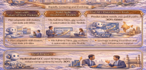 This is where HR innovation becomes critical. Instead of static headcount plans, leading GCCs use